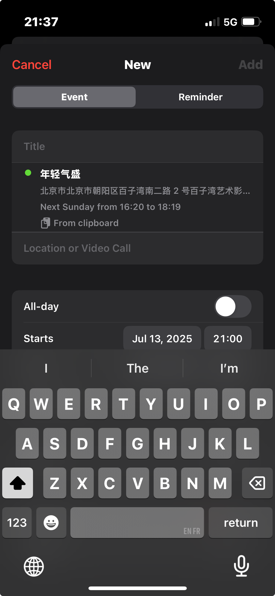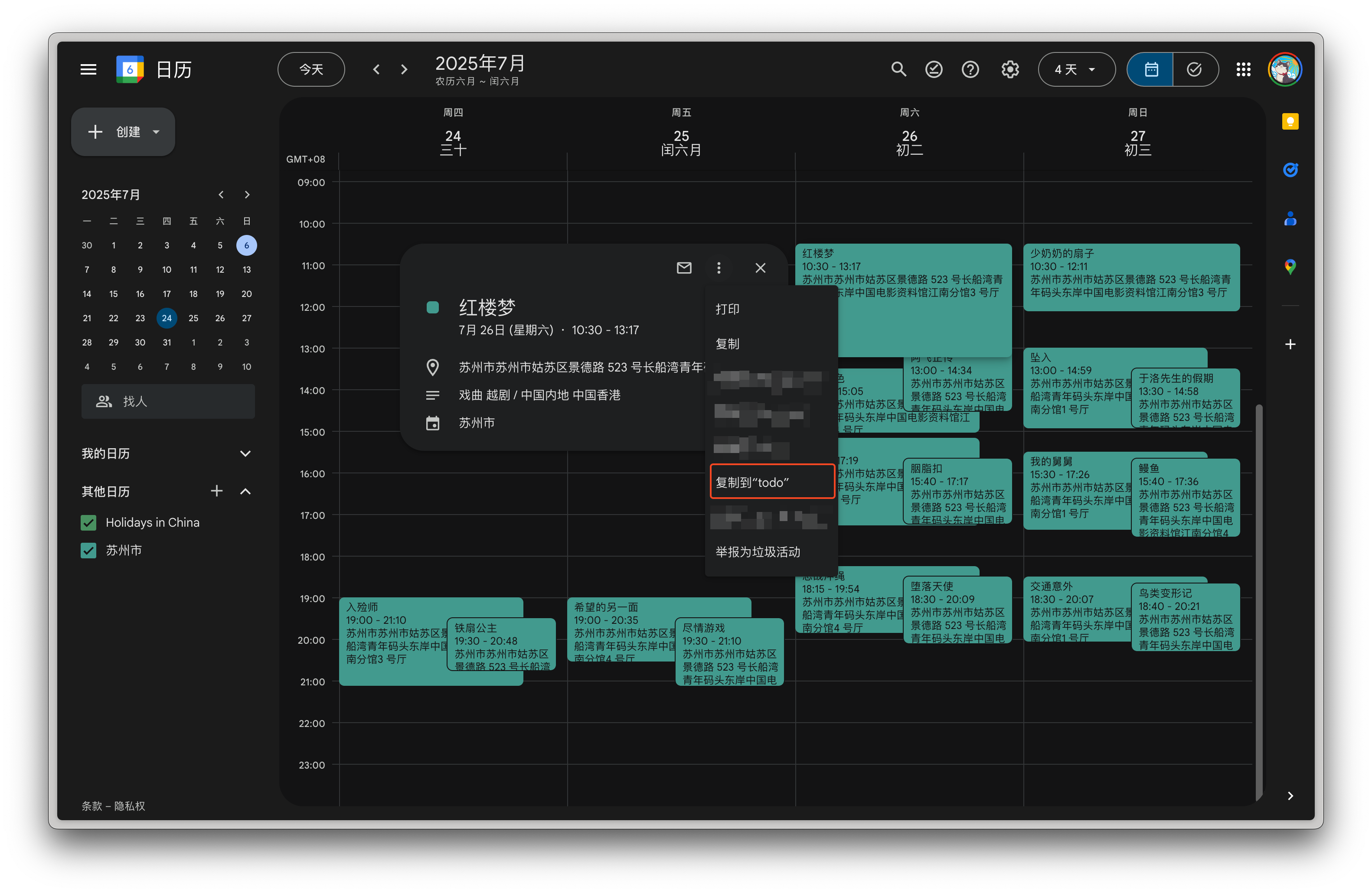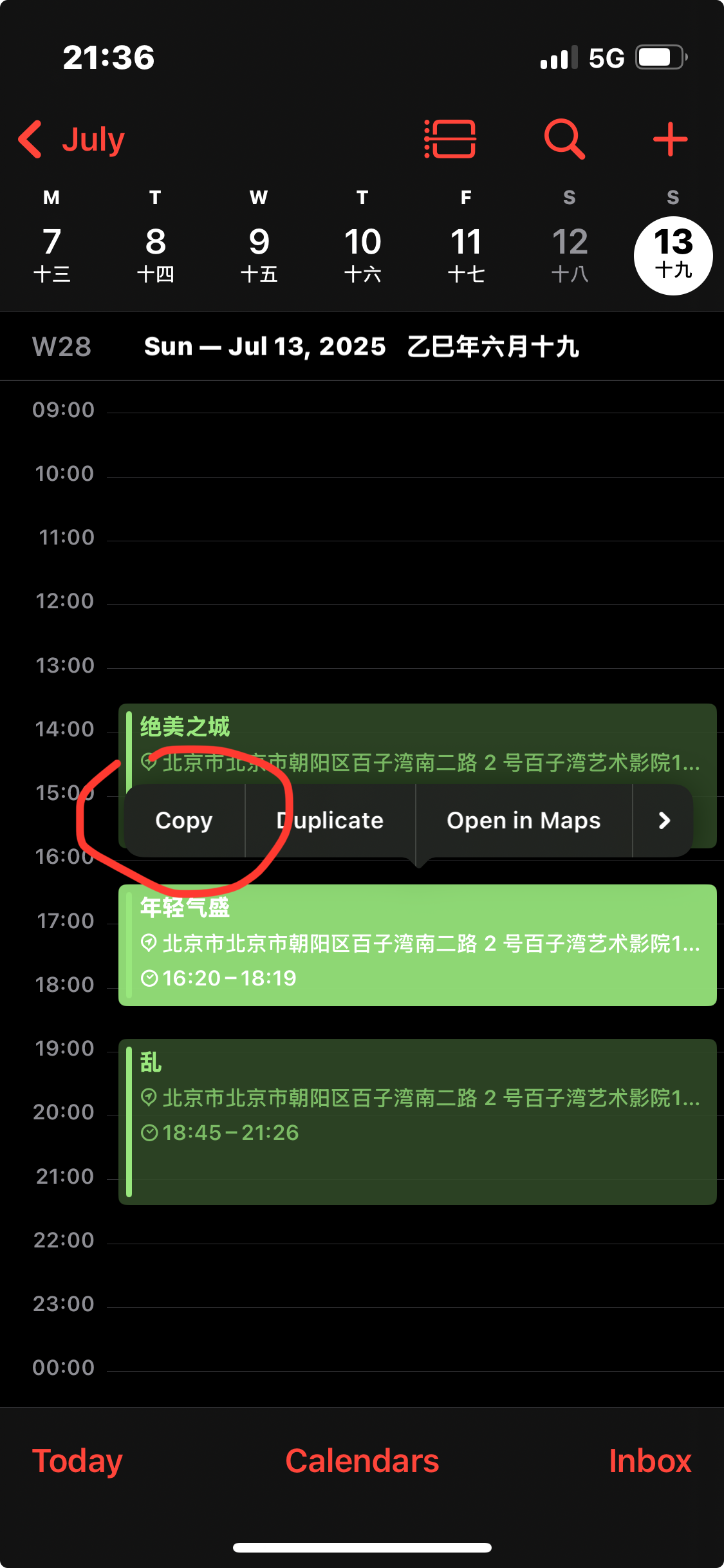 类似地,决定好要看的影片,可以长按活动,选择 复制,然后点击右上角的➕号,添加新活动,即可创建一份同样的活动到自己常用的日历账户。